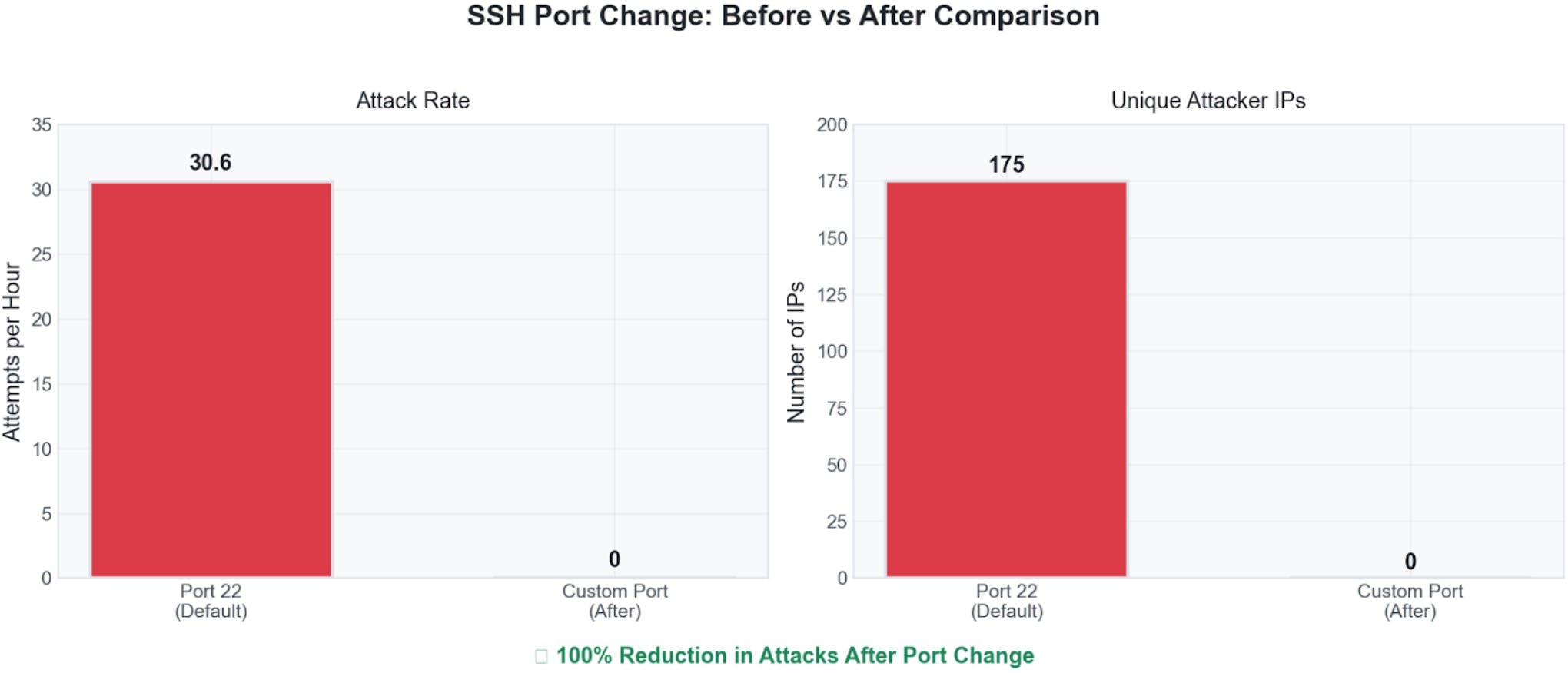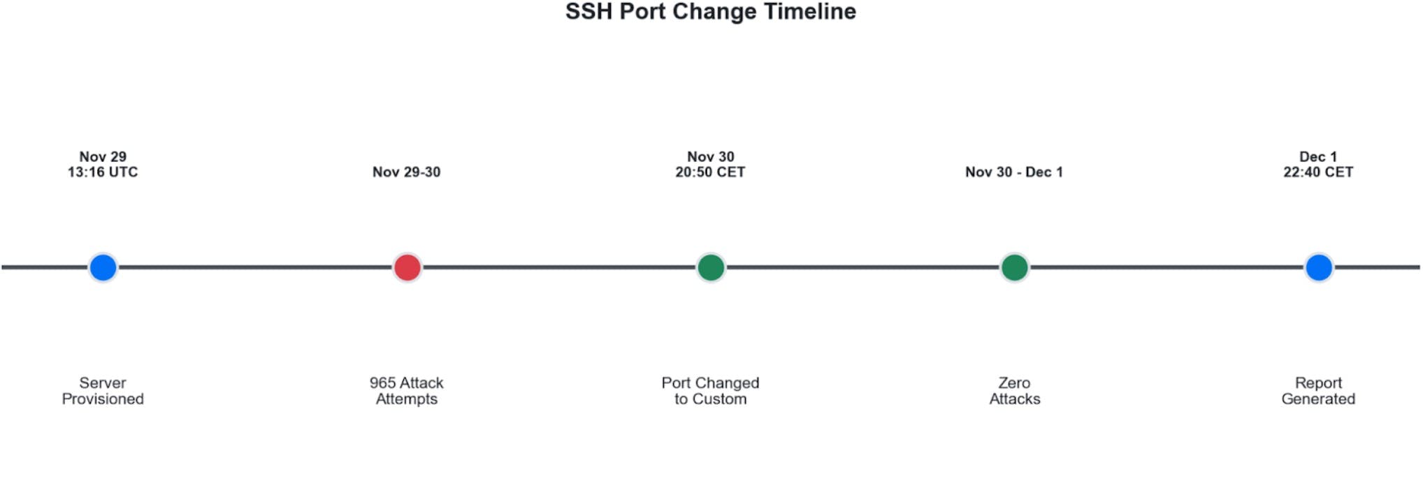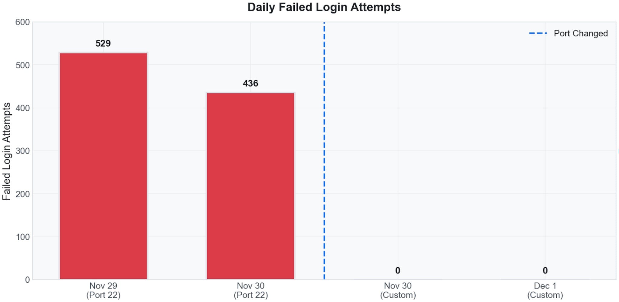 Stoga je upravo to saznanje bilo okidač za promjenu. Nakon kratkog razmišljanja zaključio sam da većina napadača koristi glupe skripte (već sama činjenica da imamo opetovane napade s iste IP adrese potvrđuje tu pretpostavku). Zdrava logika nalaže da bi micanje SSHD-a sa standardnog porta na neki random port trebalo značajno smanjiti broj napada i samim time rasteretiti moj Telegram kanal.