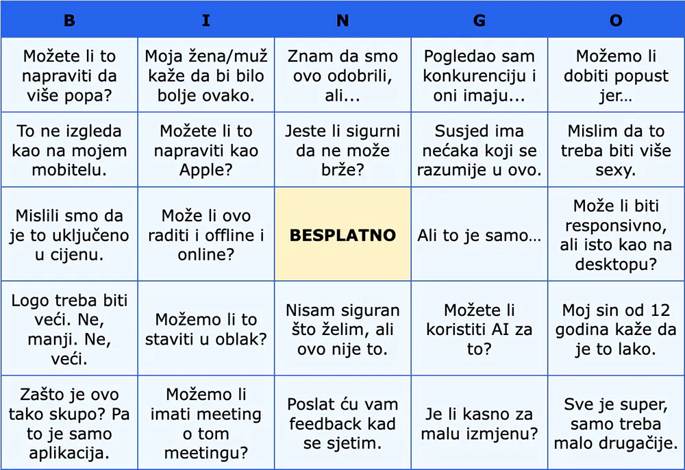 Disclaimer prije koraka u nepovrat: Volimo mi vas - i klijente i šefove i devove. Najiskrenije. Ovo je samo stress relief. Bolje u smijeh nego u burnout. Bolovanje košta projekt previše.
